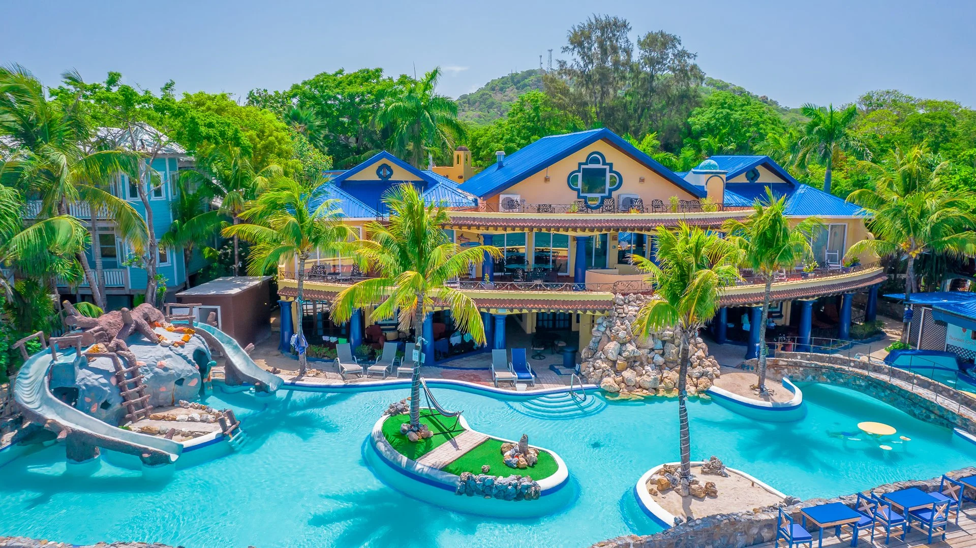 West Bay’s iconic hotel – Caribe Tesoro. Featuring villas and suites, you’re sure to find your perfect getaway. Each room has its unique charm and is equipped with all of your adventure needs. Welcome to the best resort in Roatán!